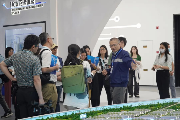 一進入中偉欽州產業基地,采訪團記者便被中偉海濱花園式的基地布局和環境吸引,連連稱贊。走進中偉科技館,中偉講解員向采訪團詳細介紹了公司的發展歷程、產業循環體系、產業一體化建設、科研技術成果以及公司的項目建設、市場占比、原材料來源、產業規模等情況,記者們時而拿出采訪本記錄、時而舉起相機、手機拍照。