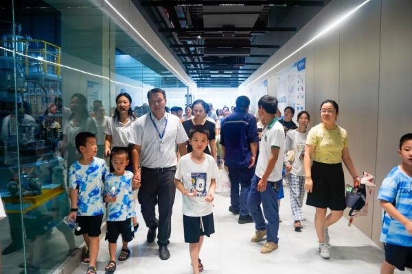 在中偉全球研發中心,小朋友們近距離參觀了中控室、檢測室、量試車間等,一雙雙充滿好奇的眼光,跟隨著探索官的講解努力地吸收知識,對新能源材料的產品研發過程有了一個初步的認知。