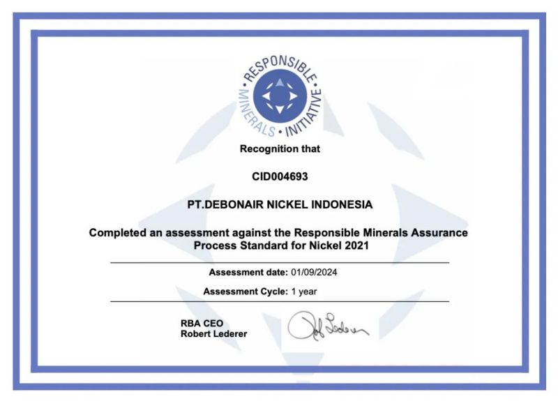 近日,位于中偉印尼緯達貝產業基地的印尼德邦鎳業有限公司成功獲得責任礦產倡議(Responsibie Minerals Initiative,簡稱“RMI”)頒發的礦產供應鏈盡責管理審核通過證書,成為印尼首家申請并通過RMI礦產供應鏈盡責管理審核的鎳粗煉企業。