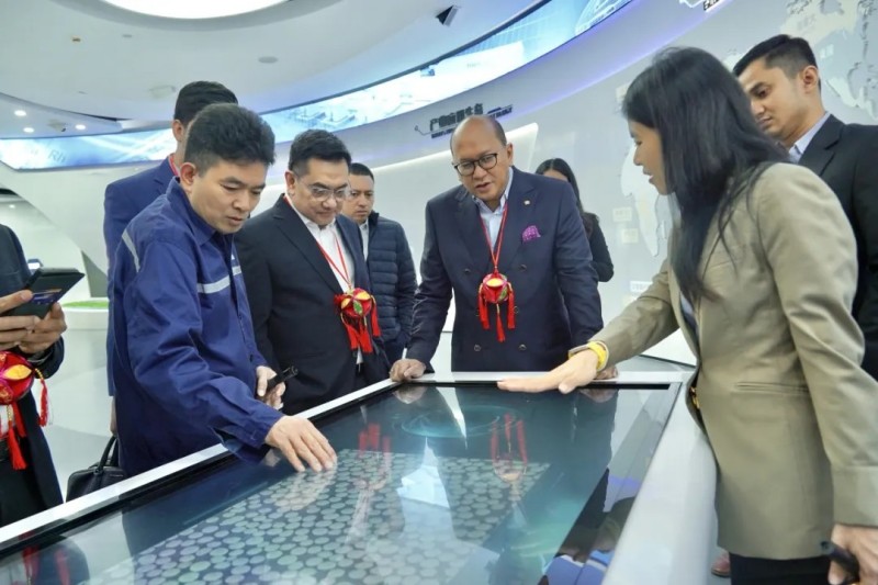 在中偉科技館,Rosan Perkasa Roeslani部長一行參觀了中偉發展歷程、產業循環體系、產業一體化、生產研發體系等展區,詳細了解中偉的產業布局、技術優勢及未來發展規劃等情況。