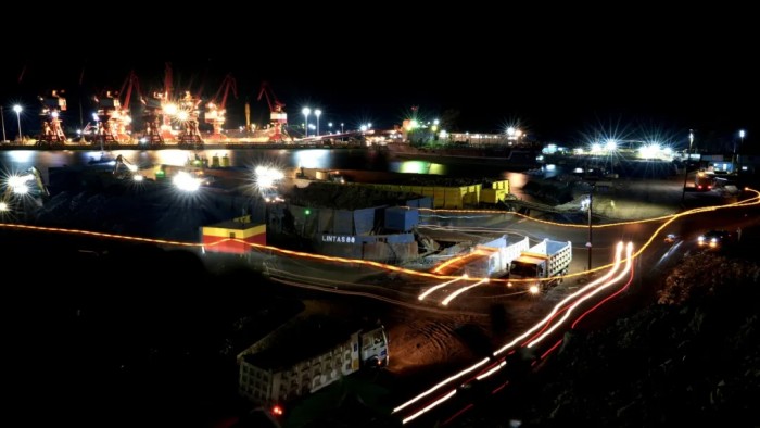 《繁忙碼頭照亮基地不眠的夜》