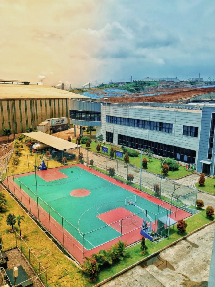 Saat hari kerja berakhir dan senja mulai turun,Kawasan Industri CNGR Morowali memancarkan keindahan harmonis yang tenang dan tertib—langit yang berlapis antara siang dan malam menyatu dalam tabrakan warna hangat dan dingin,lapangan olahraga modern,serta rumput hijau nan subur,seolah-olah sedang menanti semua orang untuk datang menikmati waktu yang indah ini.