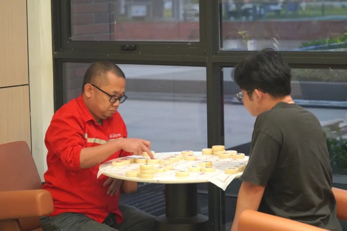 運動場下的比拼同樣精彩紛呈,臺球、象棋、電子競技的賽場正上演著無聲博弈的“頭腦運動”。象棋區內,選手們凝神靜氣,運籌帷幄,在方寸棋盤間展開無聲的智力對決;桌球選手們正沉穩出桿,他們凝神計算角度與力度,每一次精準的擊球和走位,都贏得場內陣陣低語贊嘆;而在電子競技區,則是另一番熱血景象,團隊之間配合默契,戰術執行果斷,實時策略與精準操作相輔相成,展現了新興競技項目的獨特風采。