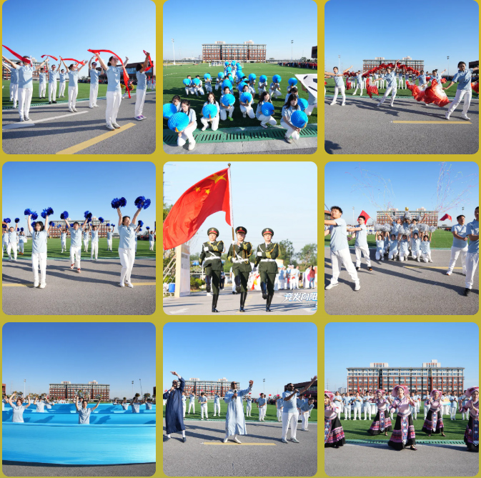 晨曦初照,開幕式現場人聲鼎沸,熱鬧非凡,8支參賽隊伍邁著整齊的步伐,跟隨國旗、司旗、運動會會旗入場,帶來各具特色的精彩表演。彩帶飄揚、花團簇簇,啦啦操與大合唱、彩扇舞與錦緞陣,形式各樣的開幕式表演將民族的、也將世界的文化凝結匯聚,展現出全球中偉人拼搏向上、自立自強的精神面貌,詮釋了“責任創新多元共贏”的精神內核。
