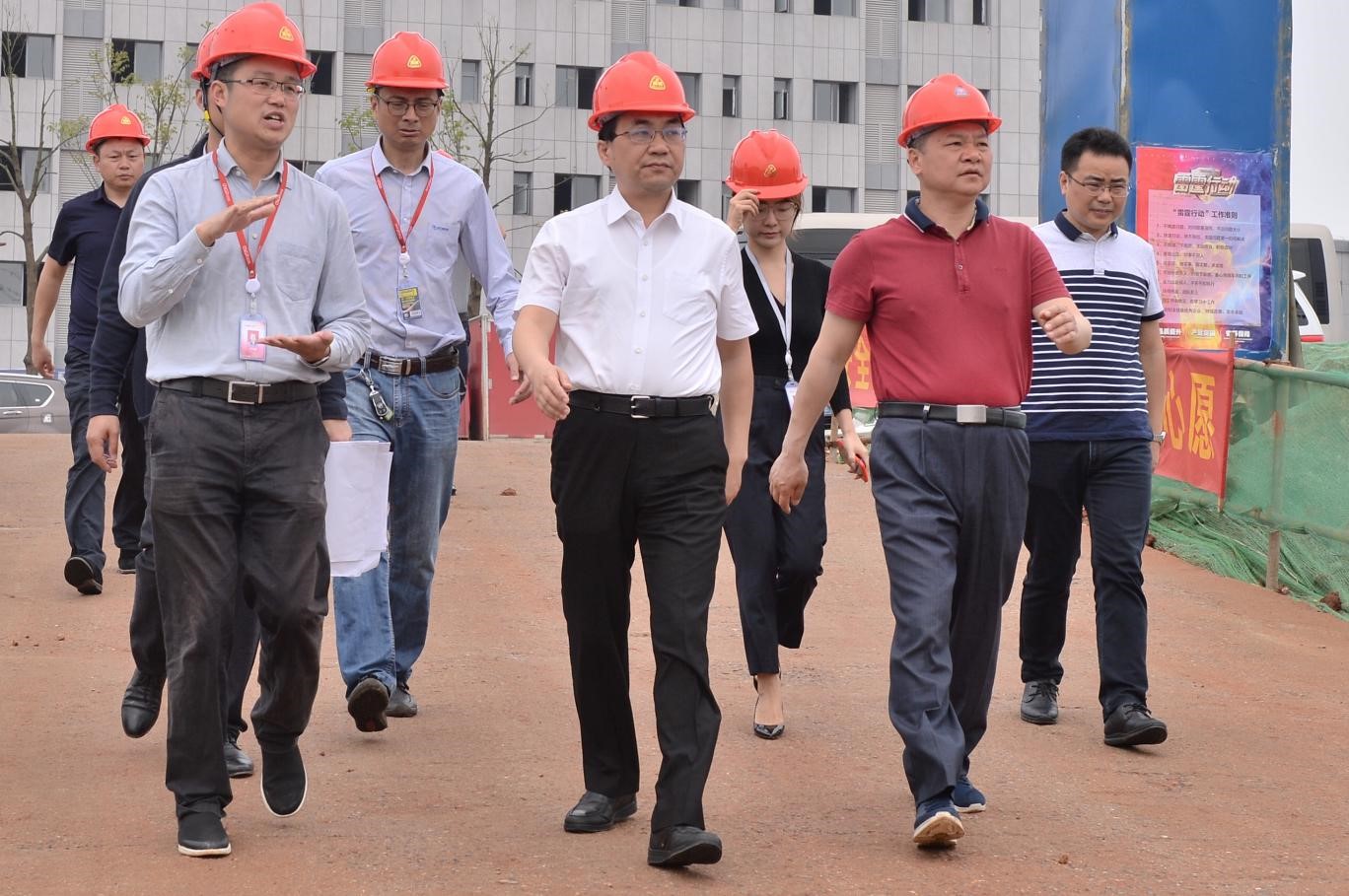 4月19日上午,寧鄉市委書記周輝(前排右)率隊赴中偉新材料寧鄉基地進行實地調研