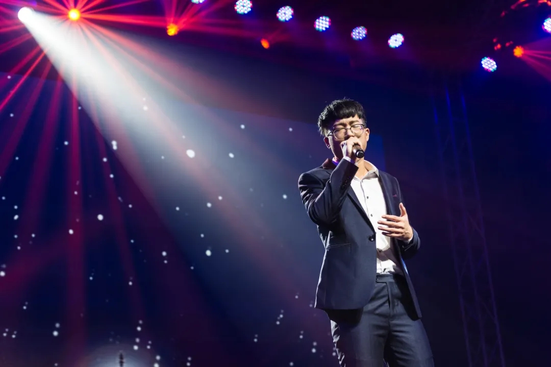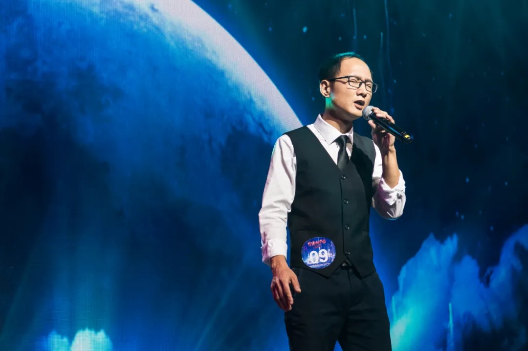 在觀看完第一位選手的VCR后,第一輪較量正式開始,來自新材料研究院的楊軼涵率先打響“第一槍”,用一首《蝴蝶泉邊》展現了自己的青春活力。緊接著,來自中部產業基地四鈷一車間,號稱“中偉蕭敬騰”的彭亞飛頭戴草帽、身著“沙灘裝”,用一首《海芋戀》將觀眾們帶回到悠長夏日的海邊;連續兩年入圍決賽、來自西部產業基地的劉剛獻唱《陷阱》,展現了車間主任的“鐵漢柔情”;來自漢華京電的劉振南上演《餓狼傳說》,以獨特的嗓音和魅力將那個屬于“四大天王”的時代再度展現在了觀眾眼前。