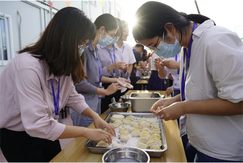 自南部產業基地動工以來,參建單位全員加班加點,每日堅守施工現場。為感謝他們為基地建設做出的貢獻,一場“中秋&國慶雙節茶話會”于當日舉行,為他們送去了來自中偉的關懷。