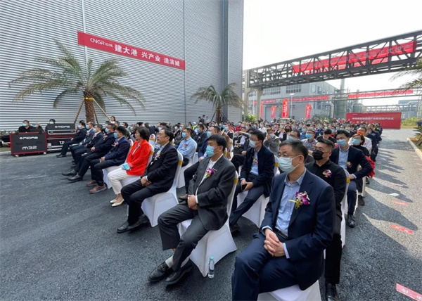 背靠一座座嶄新落成的車間,投產儀式現場莊嚴而喜慶。儀式開始,現場領導嘉賓跟隨南部產業基地紀錄片的鏡頭畫面,一起回顧了基地建設的全景,見證這一偉大的“中偉速度”、“欽州速度”。