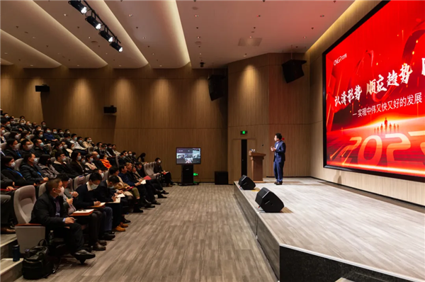 大會(huì)伊始,中偉股份財(cái)務(wù)中心總經(jīng)理朱宗元以“追夢(mèng)路上 行穩(wěn)致遠(yuǎn)”為主題,向全體參會(huì)人員詳細(xì)匯報(bào)了2021年公司的經(jīng)營概況,并對(duì)2022年的整體預(yù)算方案進(jìn)行了介紹。他表示,在過去的一年中,中偉生產(chǎn)經(jīng)營主要指標(biāo)再創(chuàng)新高,發(fā)展態(tài)勢(shì)持續(xù)向好。面對(duì)行業(yè)的激烈競爭,公司充分彰顯了發(fā)展的韌性與潛力,很好地順應(yīng)了產(chǎn)業(yè)發(fā)展趨勢(shì),實(shí)現(xiàn)了經(jīng)營的穩(wěn)步前行。隨后,鄧偉明以“認(rèn)清形勢(shì)、順應(yīng)趨勢(shì)、同心協(xié)力,實(shí)現(xiàn)中偉又好又快發(fā)展”為主題發(fā)表了重要講話,分別就當(dāng)前中偉的發(fā)展形勢(shì)、行業(yè)趨勢(shì)進(jìn)行了深度剖析與分享,并確定了“國際化、多元化、精益化”為2022年度中偉全年發(fā)展主題。