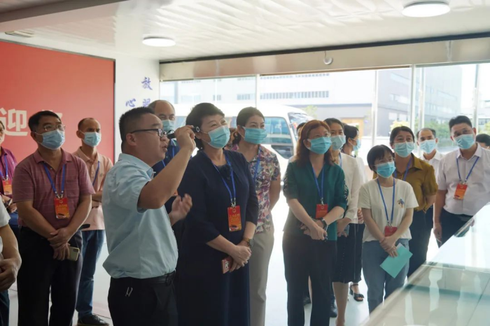 8月23日上午,在桂全國人大代表和自治區人大代表到中偉欽州產業基地開展“助力穩住經濟大盤,推動廣西高質量發展”專題調研。自治區人大常委會秘書長、辦公廳主任王革冰,自治區人大常委會選聯工委主任李朝輝,自治區人大社會建設委員會副主任委員張虹以及全國人大代表廖玉英、覃建寧、翟京宋、鄧桂芳等30多名代表參加調研,欽州產業基地總經辦副主任黃乾贈陪同調研。